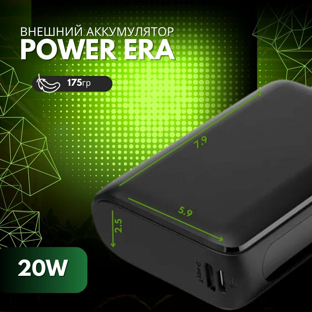 Внешний аккумулятор Power Era 10 PD, USB-A, USB-C, 10000 мАч,быстрая зарядка, черный