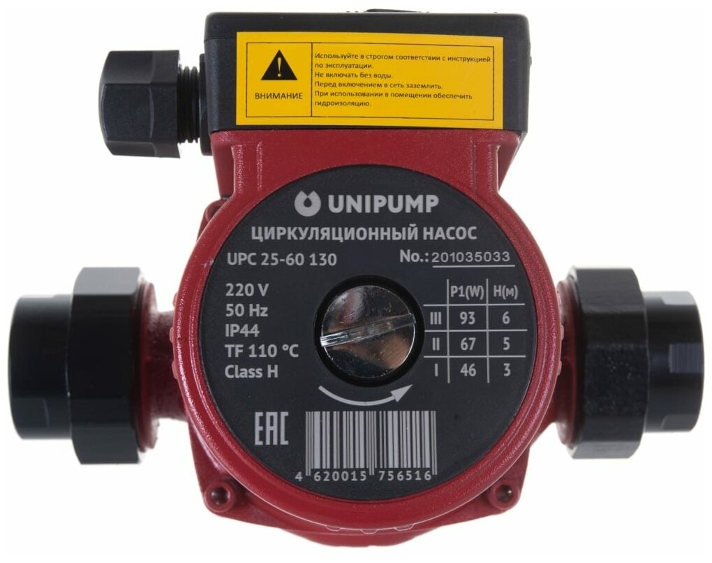 Насос циркуляционный UNIPUMP UPC 25-60 130, 93 Вт, напор 6м, 68 л/мин, с гайками