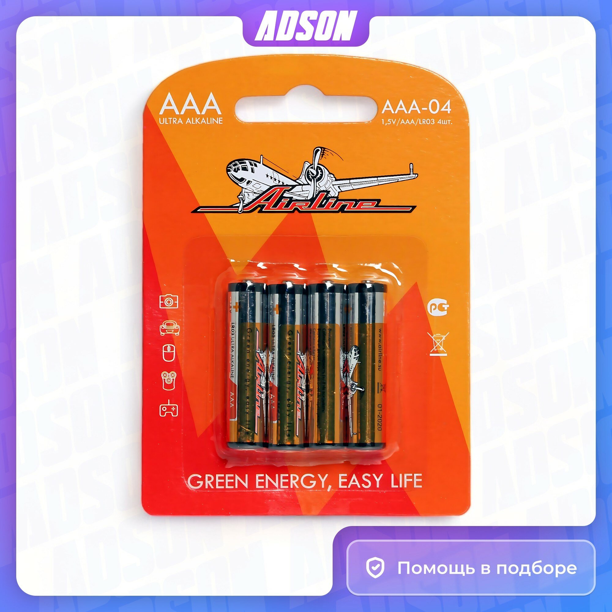 Батарейки LR03AAA щелочные 4 шт. (AAA-040), AIRLINE AAA040 (1 шт.)
