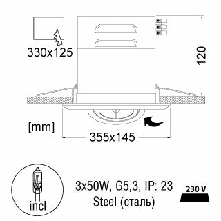 | Дополнительная информация | врезное отверстие 330×125 мм |