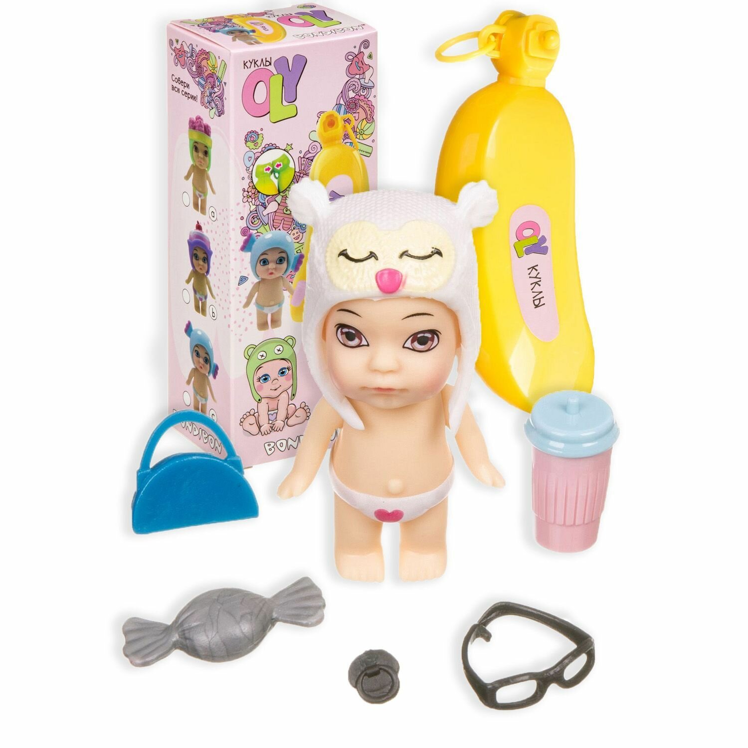 Куколка Bondibon Oly, в шапочке-ушанке, с аксессуарами, в банане (ВВ3845)