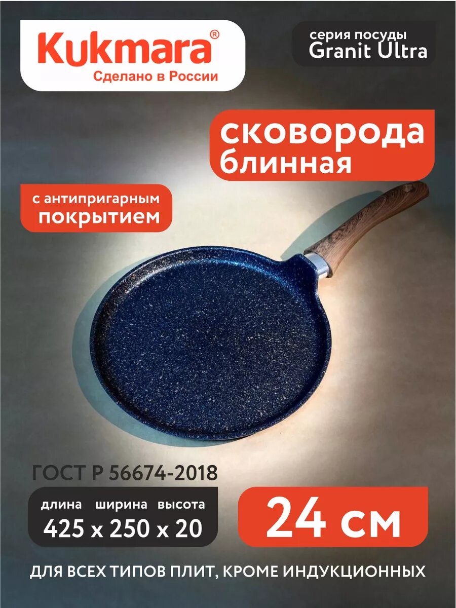 Купить Блинница Kukmara Granit ultra антипригарная, литая, 24 см