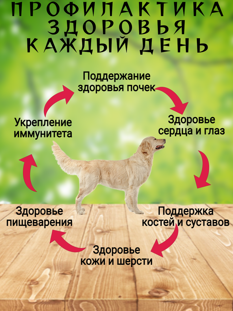 | Минусы: | Крупные гранулы, к сожалению, только для соседних и крупных собак |
