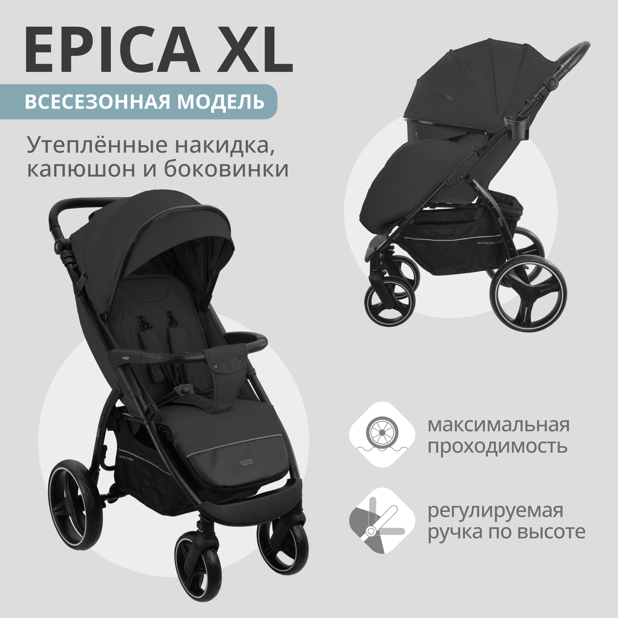 СохранитьКоляска прогулочная Indigo EPICA XL чёрный 4627183288146 интересное:
