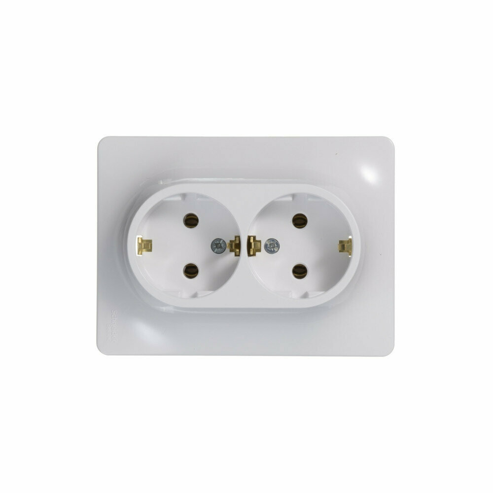 Розетка Schneider Electric Glossa двойная с заземлением без шторок белая (комплект из 2 шт.)