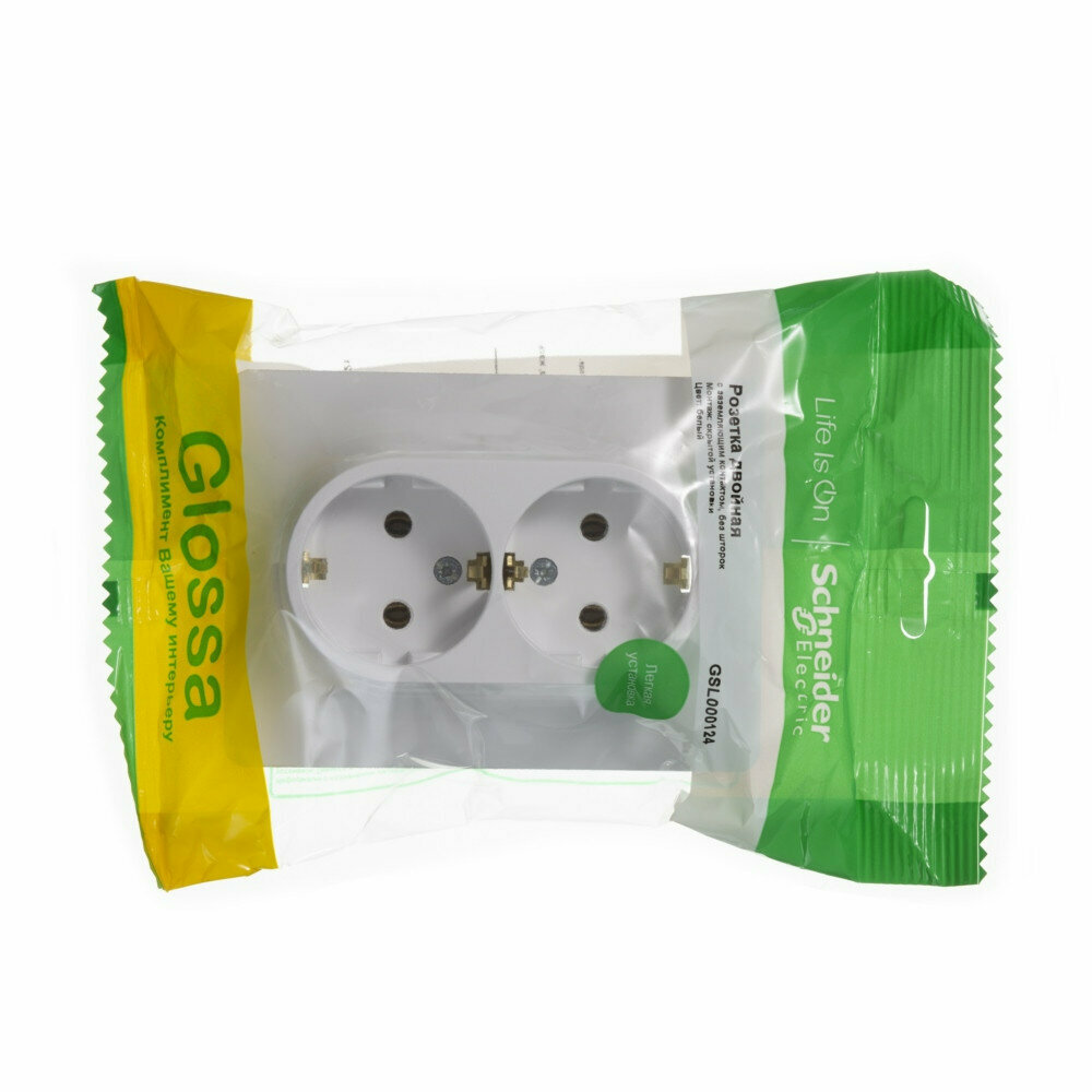 2шт. - GLOSSA Розетка двойная с заземлением в сборе белая / Systeme Electric; арт. GSL000124; оригинал / - комплект 2шт