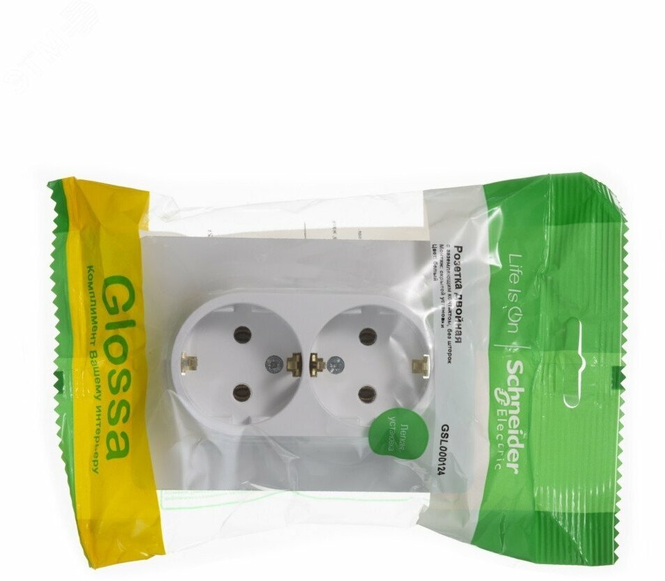 Сохранить15шт. - GLOSSA Розетка двойная с заземлением в сборе белая / Systeme Electric; арт. GSL000124; оригинал / - комплект 15шт интересное: