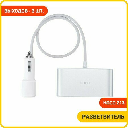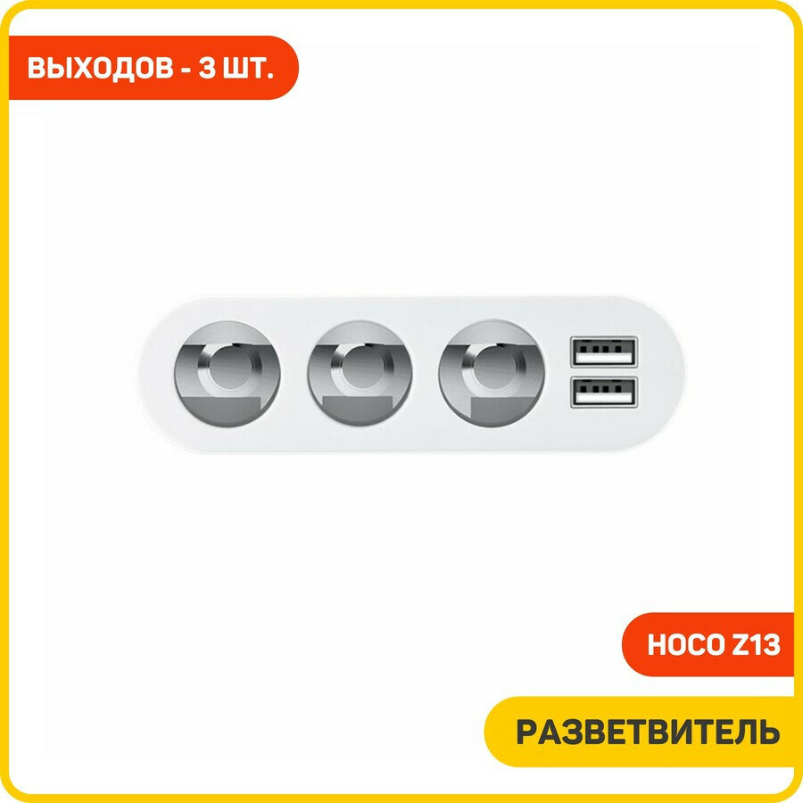 Автомобильное зарядное устройство Hoco Z13, 3 разъема прикуривателя, 2 USB, 2.1 А, 55 см