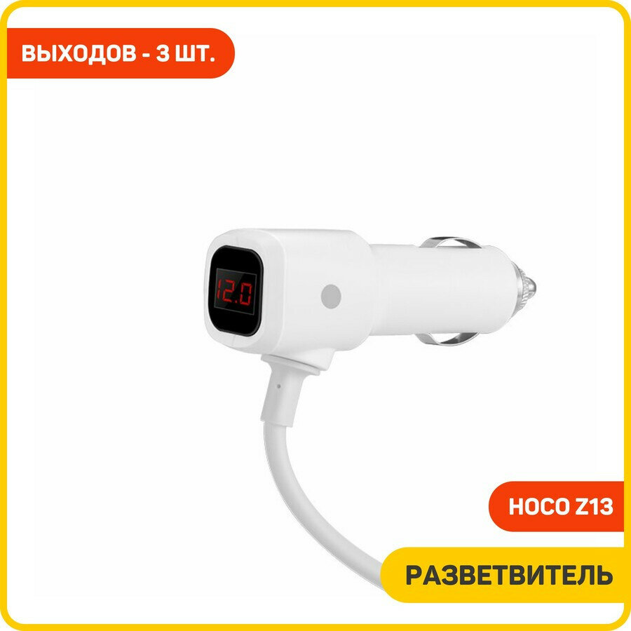 АЗУ разветвитель прикуривателя HOCO Z13 LCD, белый