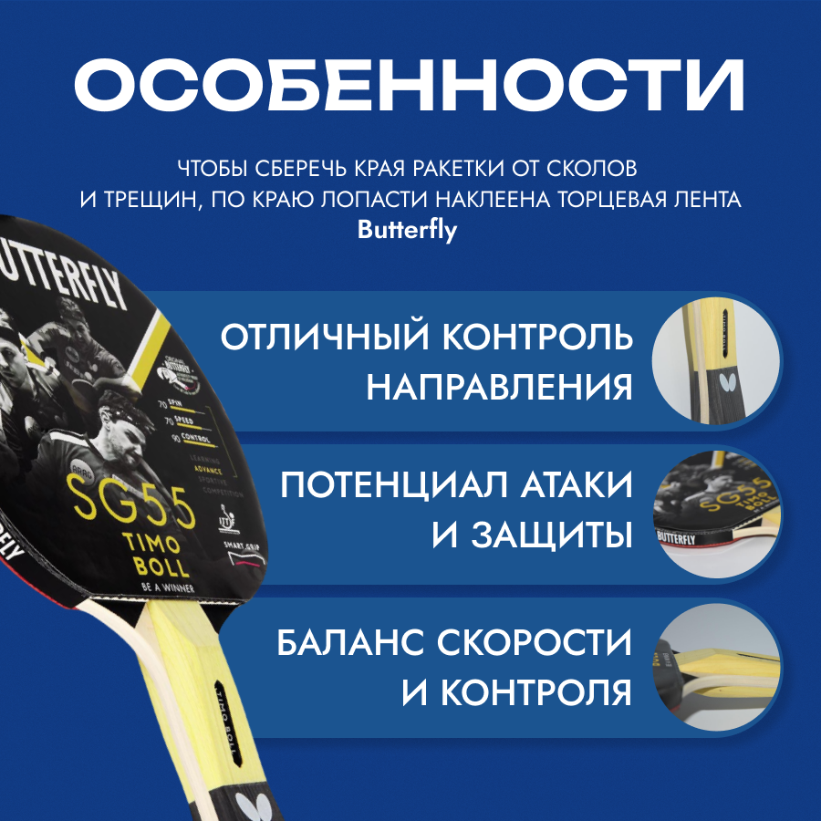 Ракетка для настольного тенниса Butterfly Timo Boll SG55 85022, CV интересное: