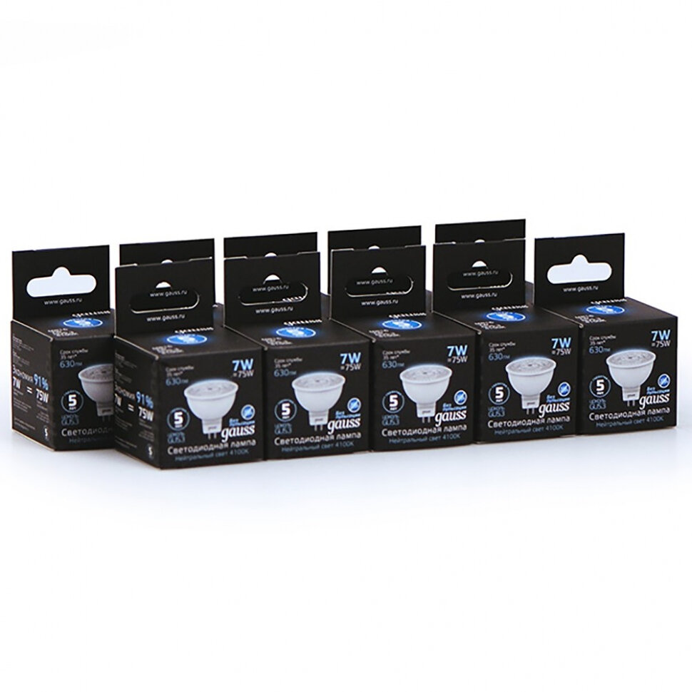 (6 шт.) Светодиодная лампочка Gauss MR16 7Вт 150-265В 4100K GU5.3