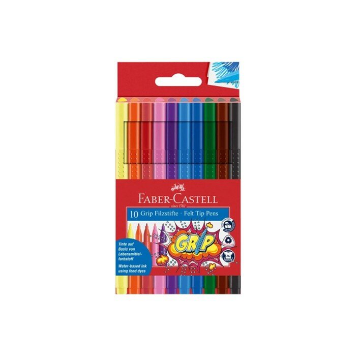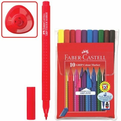 Купить Фломастеры FABER-CASTELL «Grip», 10 цветов, трехгранные, смываемые, ПВХ упаковка