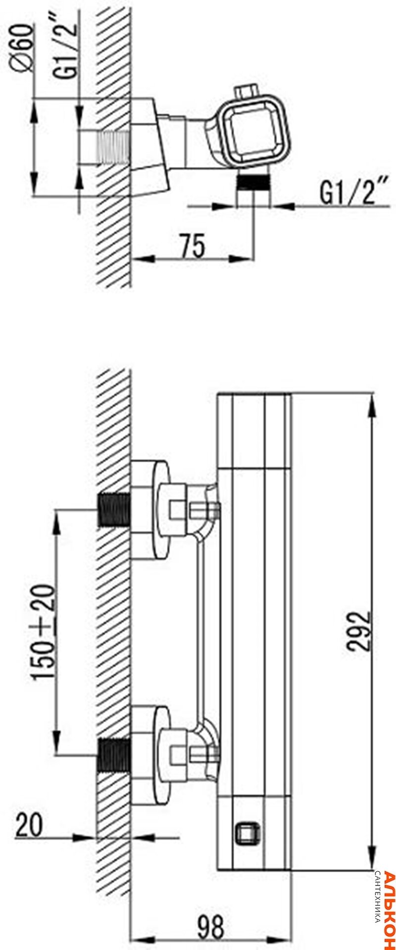 Купить Смеситель для душа RAVAK 10° TD 033.00/150 термостатический, настенный