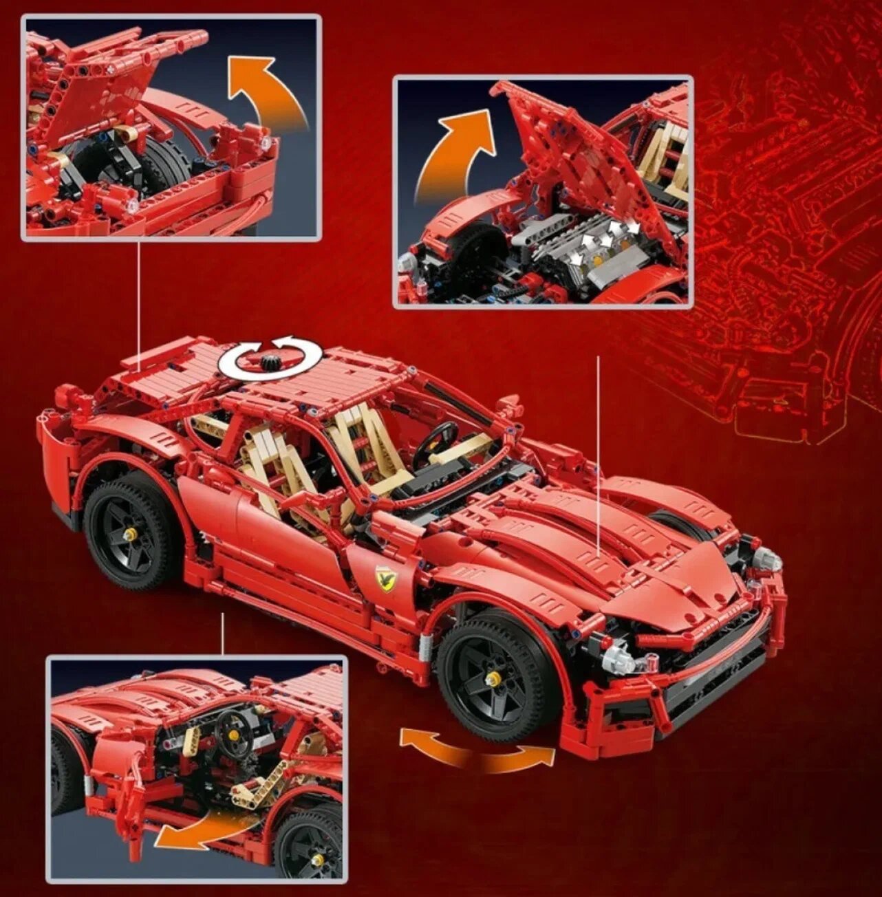 Конструктор Техник: Красная спортивная машина - 1441 деталей/Совместим с Лего