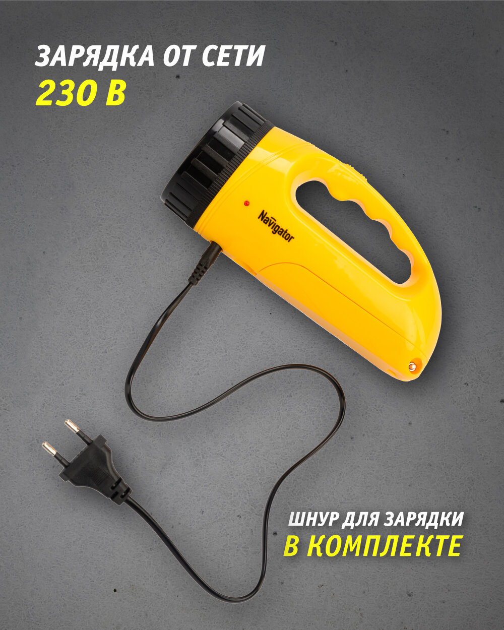 Купить Navigator фонарь-прожект/кемп. NPT-SP13-ACCU, (акк. 4V 1,1Ah),12св/д+18св/д, 90lm, пласт, жёлт 94783