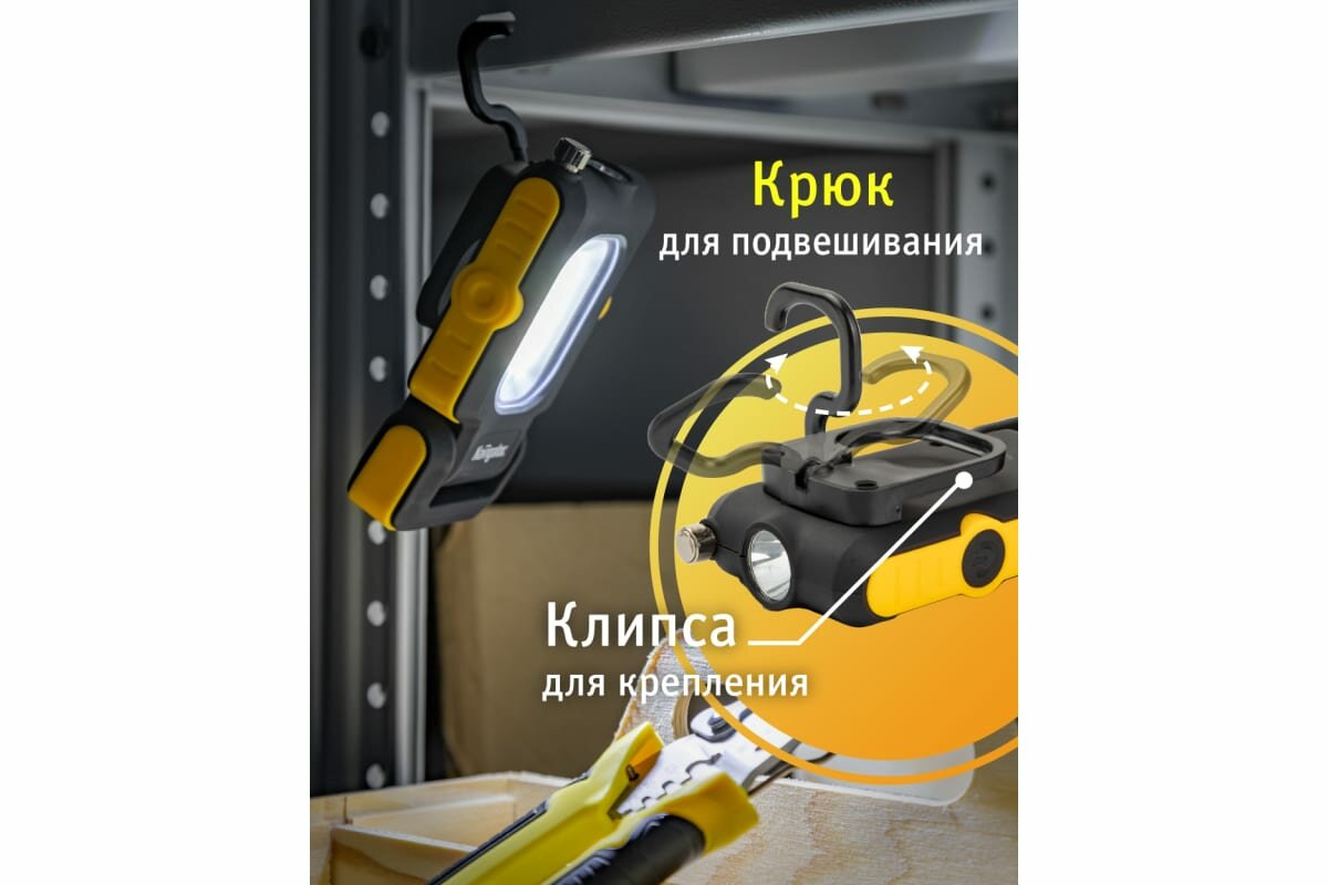 Фонарь Navigator NPT-W07-ACCU для работы, 1LED 1Вт +1COB 3Вт, аккумулятор 3.7В 14083