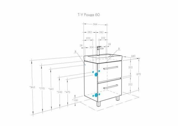 | Дополнительная информация | конструкция верхнего ящика разделена на две секции, что очень удобно для хранения мелких предметов; вместительны нижний ящик позволит спрятать более крупные вещи; раковина приобретается отдельно |