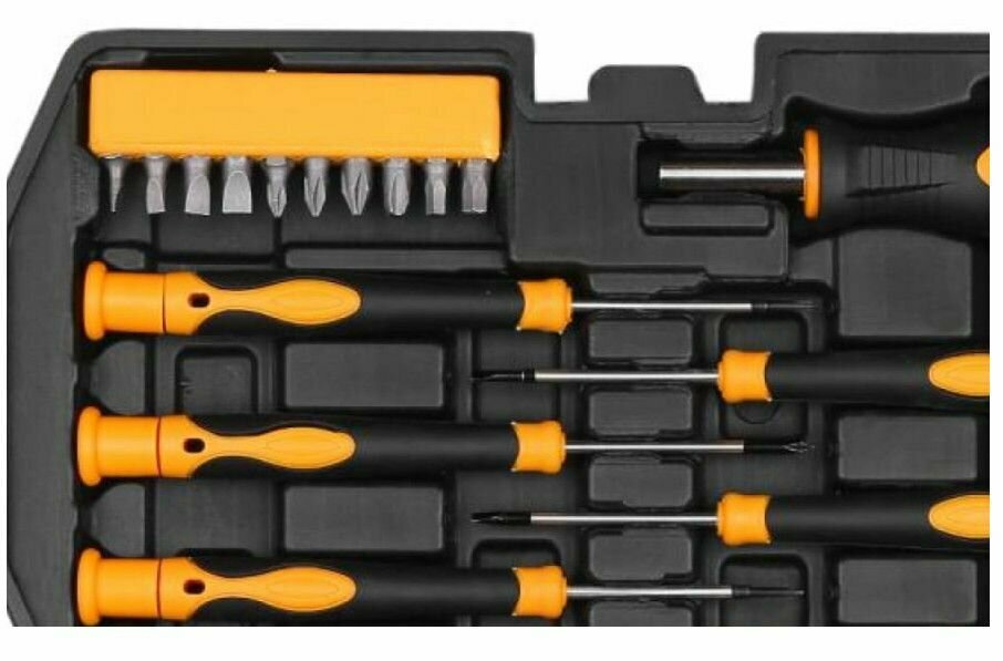 | Дополнительная информация | 10 шт. биты 25L: SL3, SL4, SL5, SL6, PH0, PH1, PH2, PH3, H4, H5; 6 шт. прецизионные отвертки: PH000, PH00, PH0, SL2.0, SL2.4, SL3.0; 1 шт. держатель для бит 6.35 мм; 2 шт. отвертки: PH1X75, SL5X75 мм; 1 шт. длинногубцы 6"; 1 шт. строительный нож 18 мм; 40 шт. крепеж; кейс |