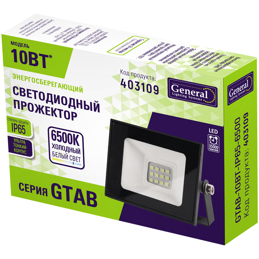 GENERAL прожектор светодиодный 10W(860lm) 6500K 6K IP65 GTAB-10BT-IP65-6500 403109