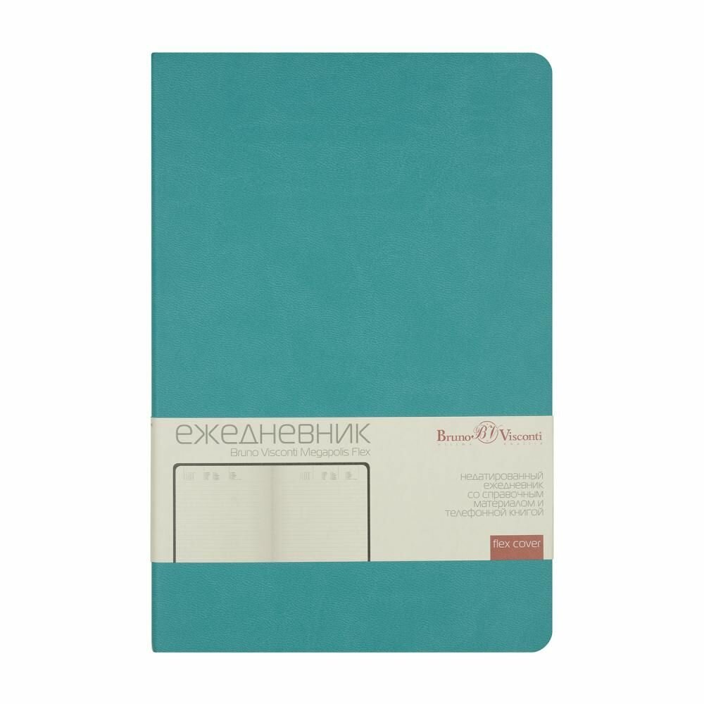 Купить Ежедневник Bruno Visconti Megapolis Flex недатированный, искусственная кожа, А5, 136 листов, морская волна, цвет бумаги тонированный