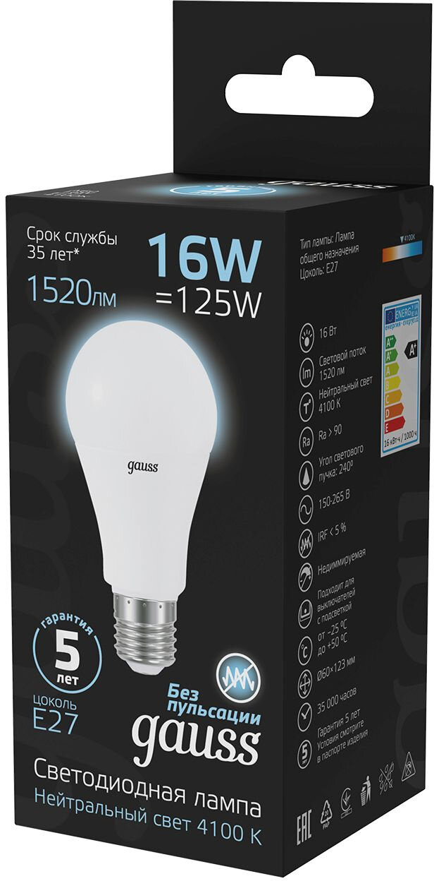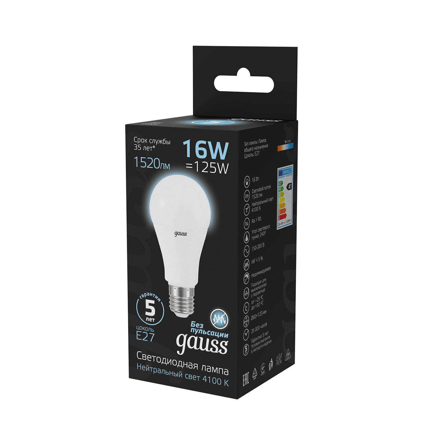 Gauss Лампа A60 16W 1520lm 4100K E27 LED