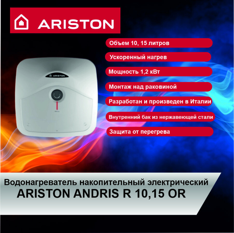 Водонагреватель электрический накопительный ARISTON ANDRIS R 10 UR, настенный, с установкой под раковиной