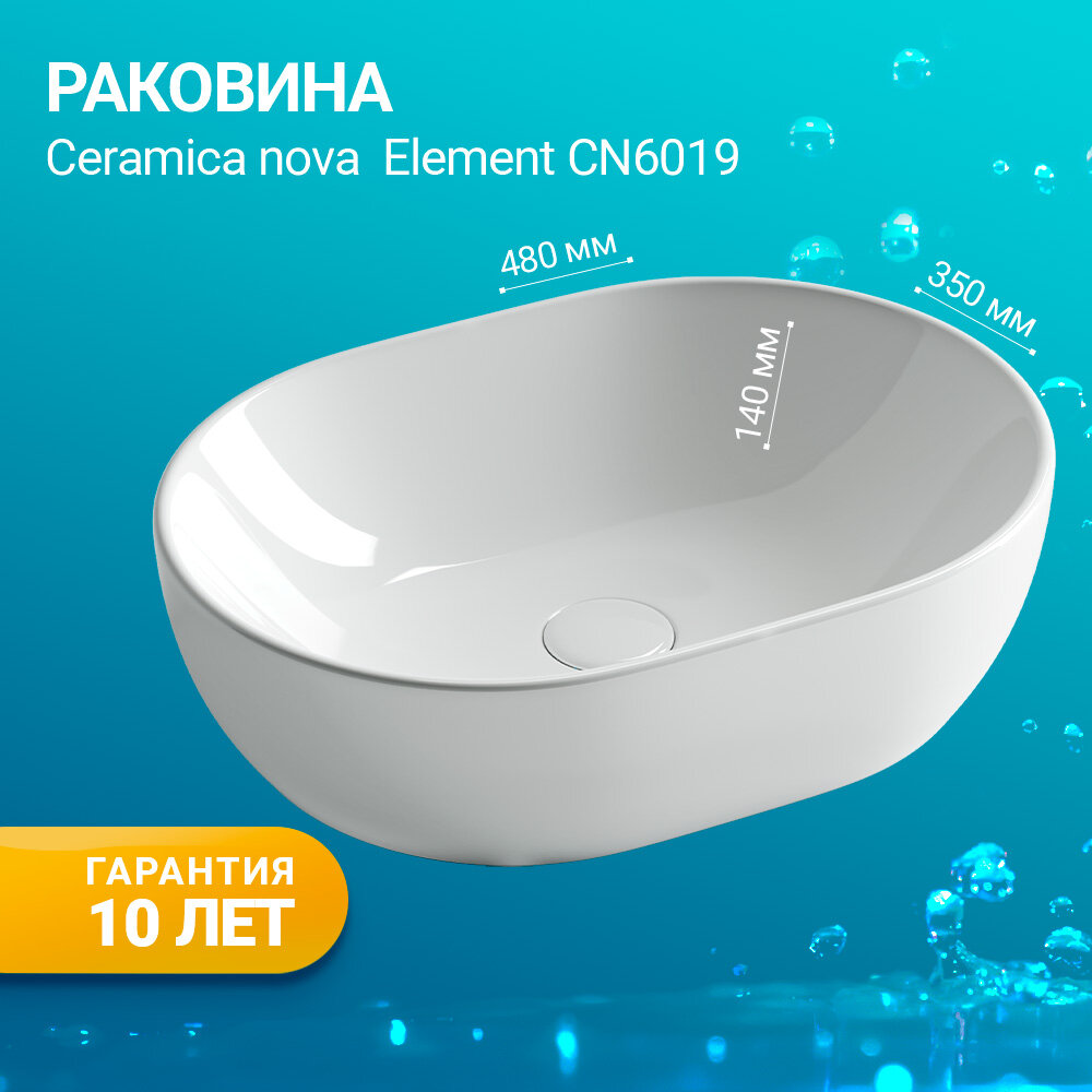 Раковина накладная Ceramica Nova Element 480х350х140 овальная, без перелива, белый CN6019