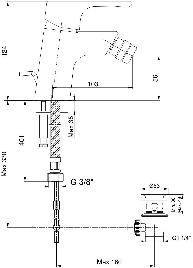 Смеситель для биде E.C.A NIOBE 102110196EX