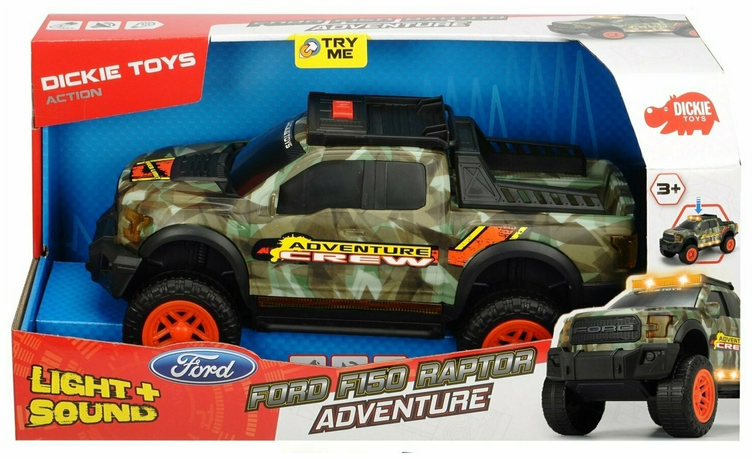 Машина Dickie Toys "Adventure Ford F150 Raptor", инерционная, звуковые и световые эффекты, 33 см
