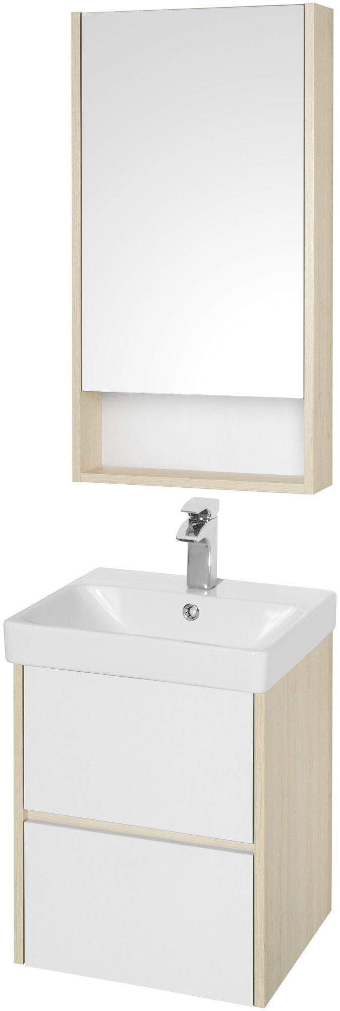 Тумба с раковиной белый глянец/дуб верона 45 см Акватон Сканди 1A2516K0SDB20