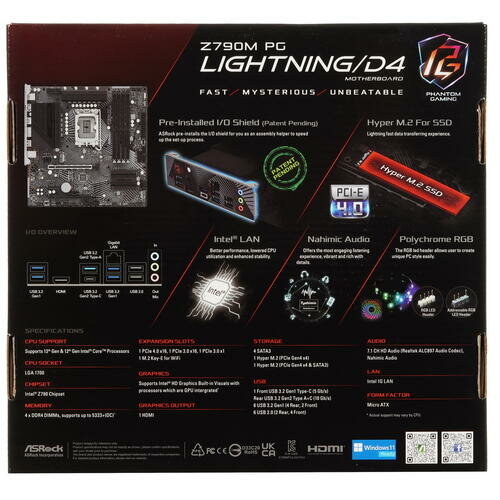 Материнская плата ASRock Z790M PG LIGHTNING/D4 Socket 1700 Z790 4xDDR4 2xPCI-E 16x 1xPCI-E 1x 4xSATA III mATX Retail