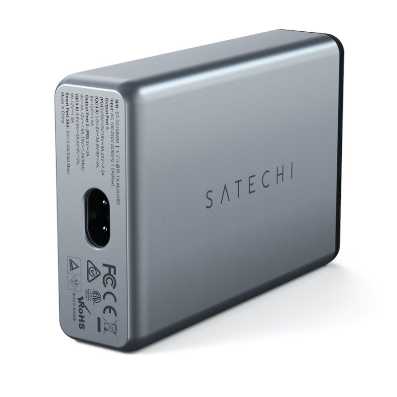 Сетевое зарядное устройство Satechi 108W (ST-TC108WM) с USB-A/Type-C PD и поддержкой быстрой зарядки. Цвет: серый космос