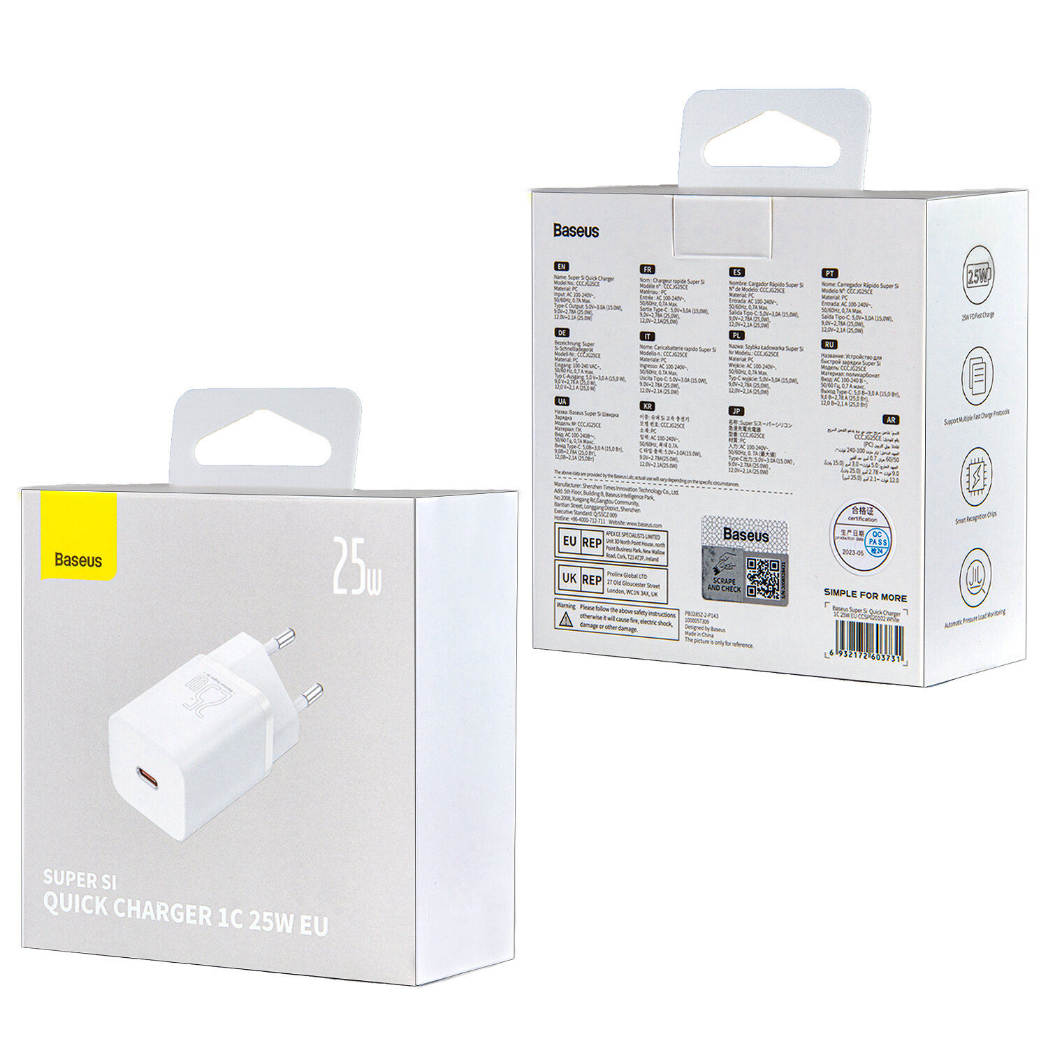 Baseus Super Si Quick Charger 1C 25W EU White CCSP020102 .