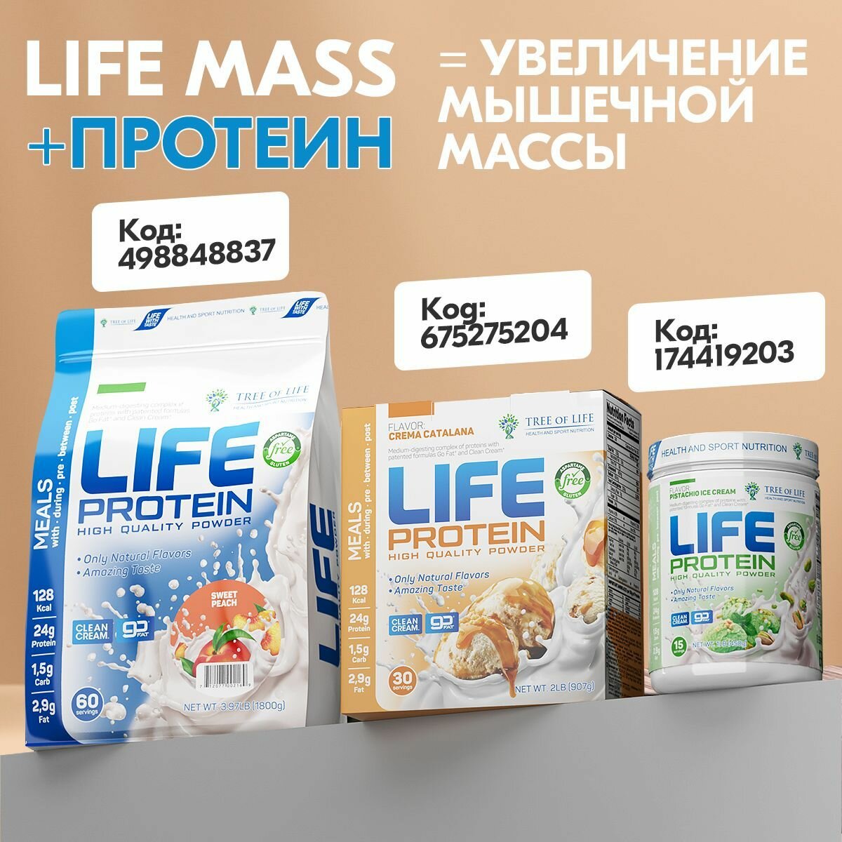 СохранитьКомплекс Гейнер Tree of life Mass GAINER 6LB (2,73 кг) вкус Фисташка + Креатин моногидрат 150 гр. в подарок интересное: