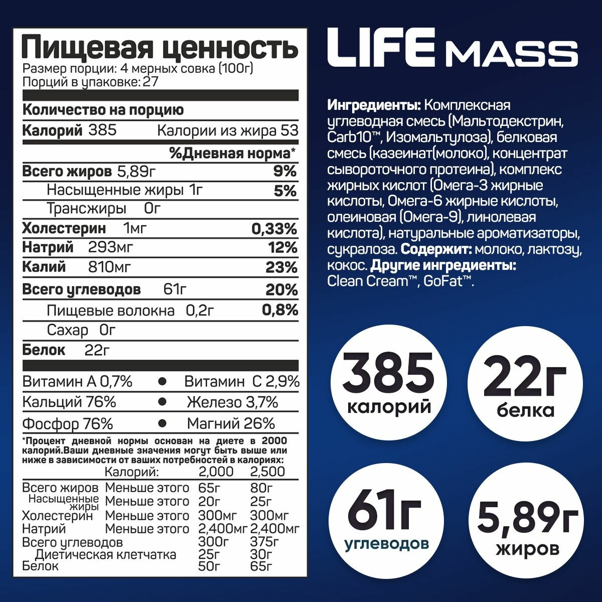 Life Mass Gainer 2730 gr, 27 порции(й), банан
