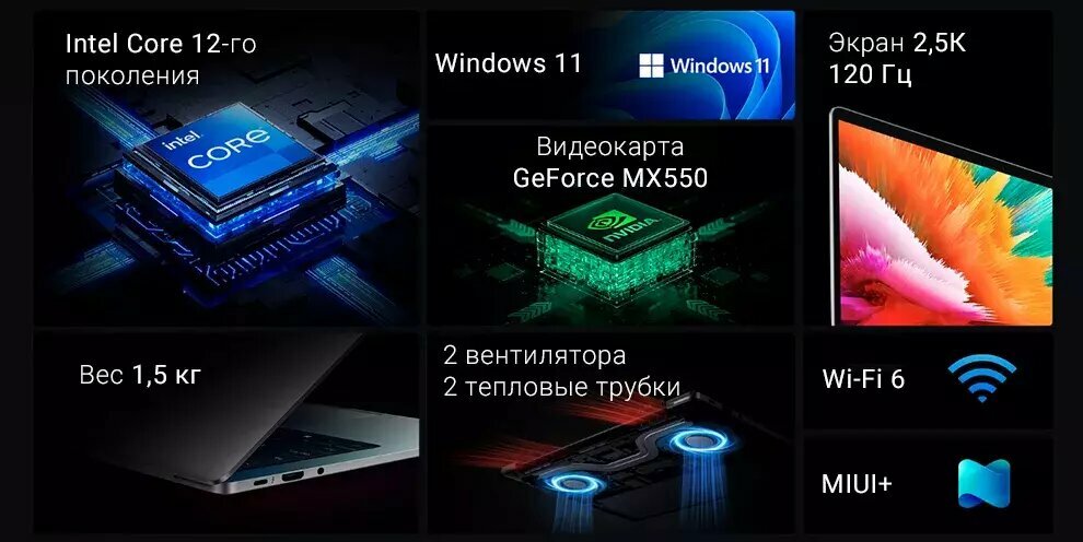 Купить Ноутбук Xiaomi RedmiBook Pro 14" (Intel Core i7 12650H 3500 MHz/3200x2000/16Gb/512Gb SSD/MX550/Win11 RUS) серый