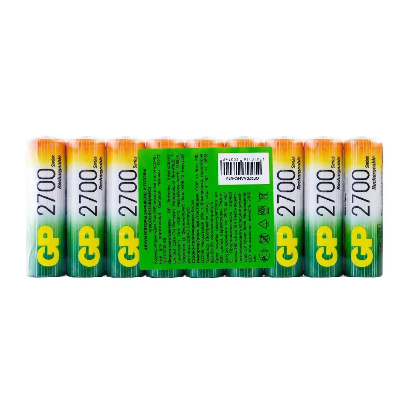 Батарейки аккумуляторные GP, комплект 8 шт., АА, Ni-Mh, 2700 mAh, блистер, 270AAHC-2DECRC4