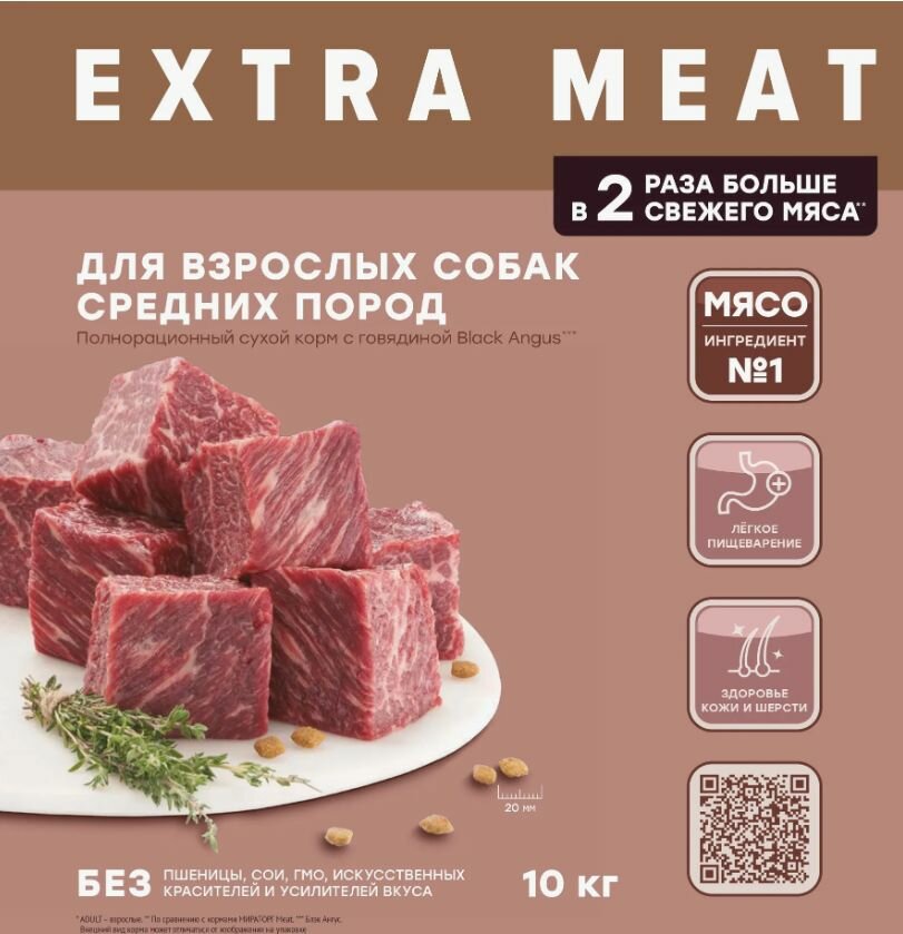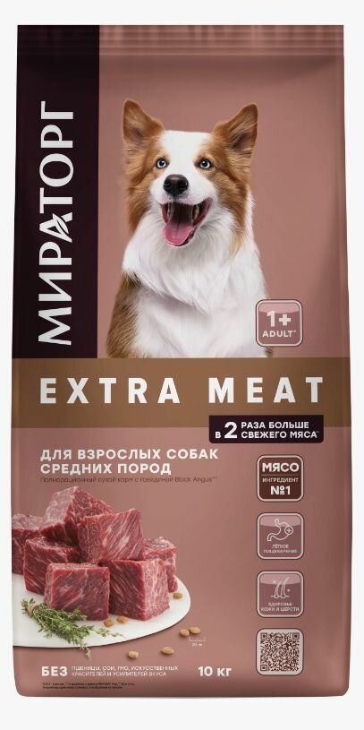 Корм сухой Мираторг EXTRA MEAT для взрослых собак средних пород старше 1 года с говядиной Black Angus 10 кг