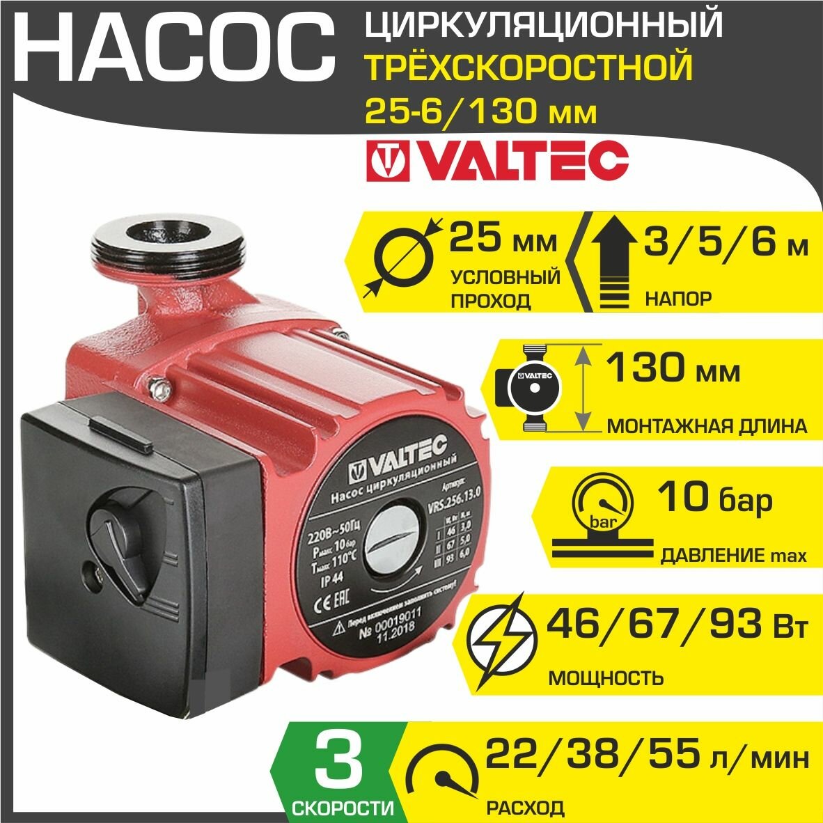 Насос циркуляционный VRS 25/6-130, Valtec, VRS.256.13.0