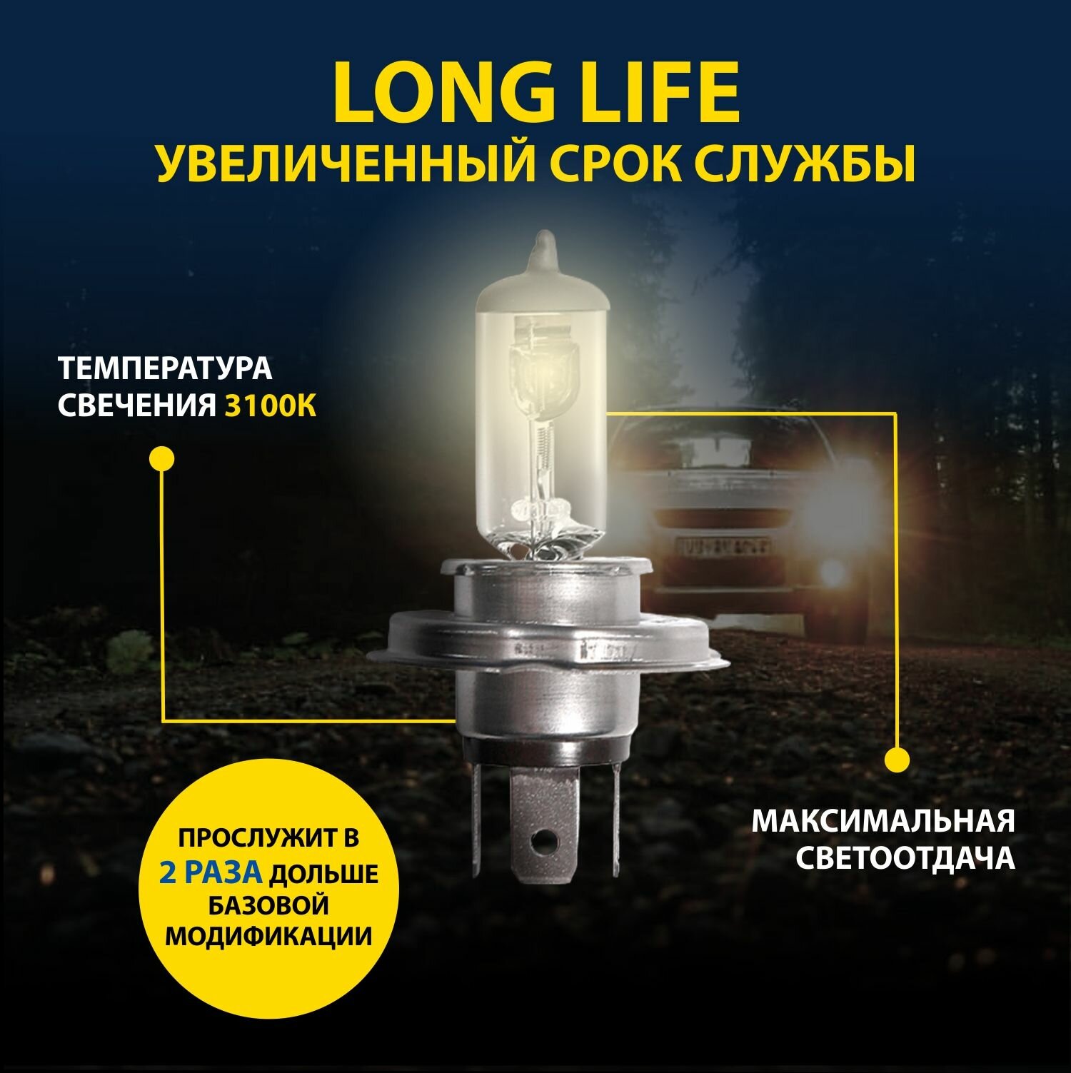 Лампа галогеновая головного света H4 P43t 12V 60/55W картон 1шт
