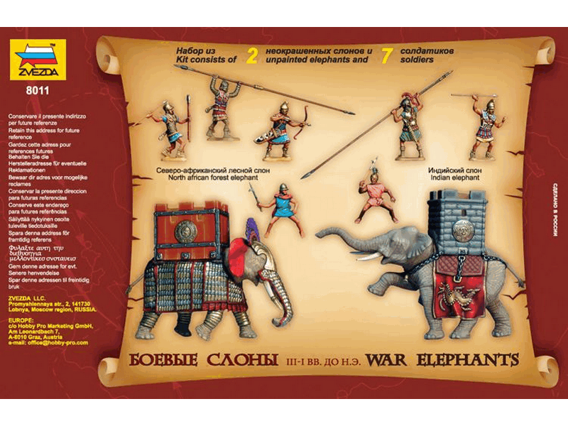 Набор исторических миниатюр Боевые слоны, 8011 Звезда, масштаб 1/72