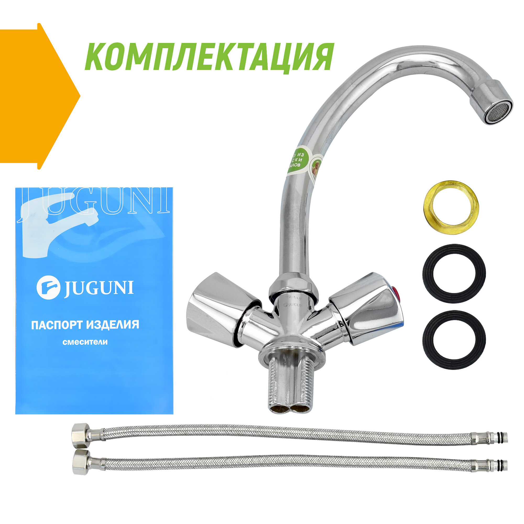 Juguni Смеситель для мойки двуручный , JGN0330, кран-букса рез. 0402.643 интересное: