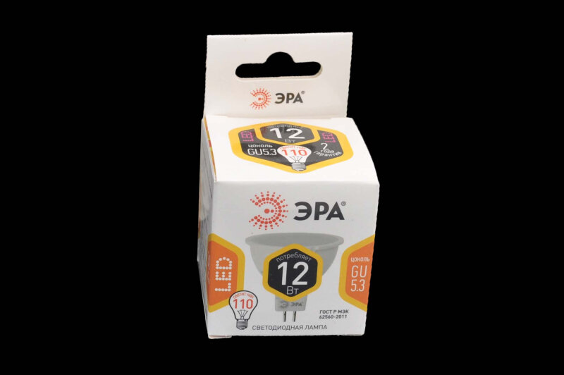 Типы/Лампочки/Светодиодные ЭРА Лампа светодиодная ЭРА GU5.3 12W 2700K матовая LED MR16-12W-827-GU5.3 Б0040887