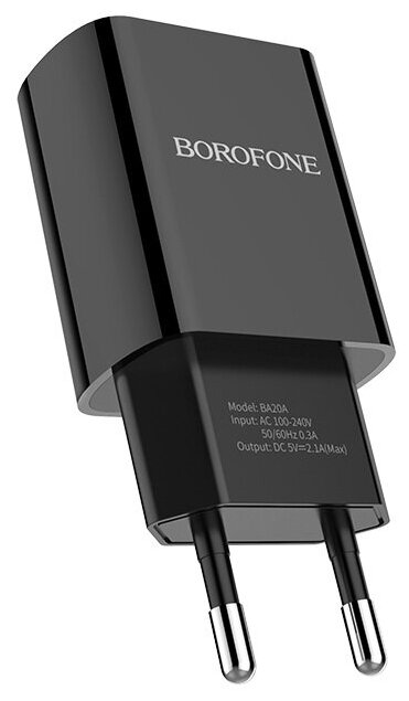 Сетевое зарядное устройство Borofone BA20A, 1 USB, 2.1 А, чёрное