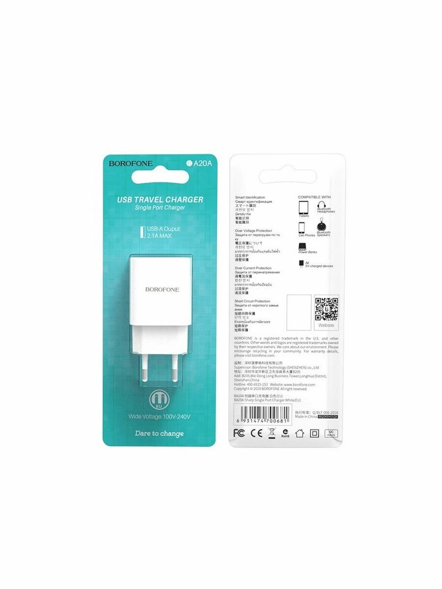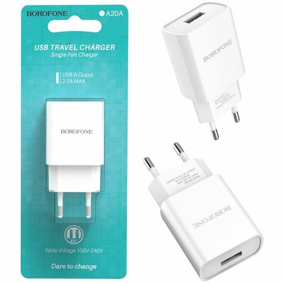 Сетевое зарядное устройство Borofone Ba20a, 1 Usb, 2.1 А, белое Borofone 9236958