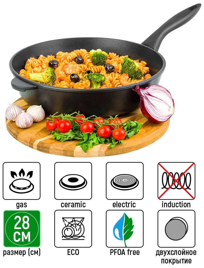 Сковорода глубокая Elan Gallery Гармония вкуса "Черный Оникс", несъёмная ручка, 28 см интересное: