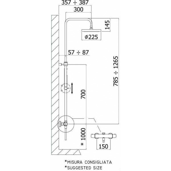| Дополнительная информация | высота стойки для душа: 1265 мм; диаметр верхнего душа: 225 мм |
