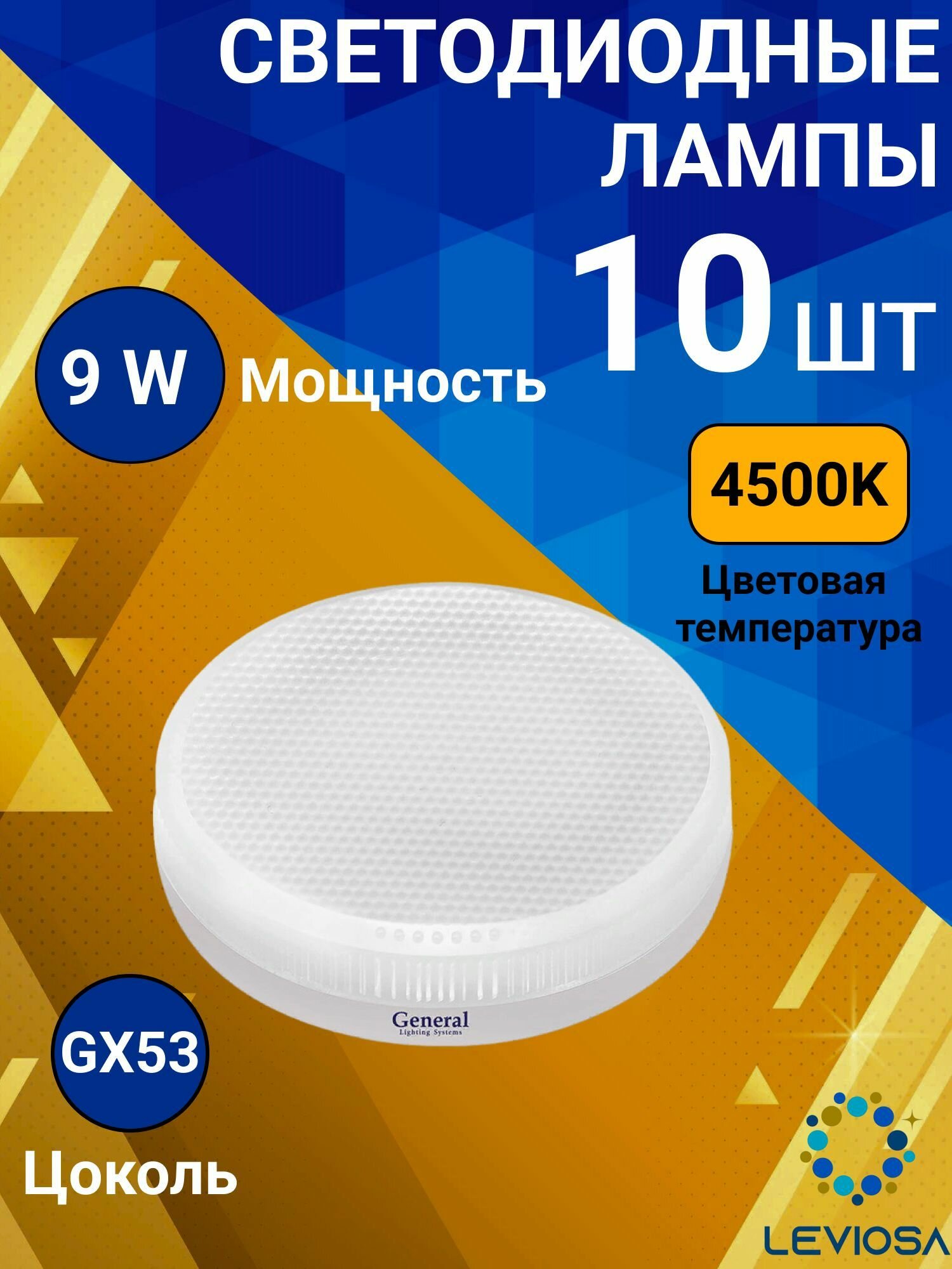 Светодиодные лампы, General, Комплект из 10 шт, Мощность 9 Вт, Цоколь GX53, Дневной свет