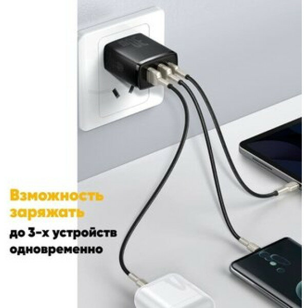 Сетевое зарядное устройство Baseus 30W Быстрая зарядка PD 3.0 + QC 3.0, 2 x USB + USB Type-C Compact Quick Charger CCXJ-E01 для телефона Apple iPhone Android