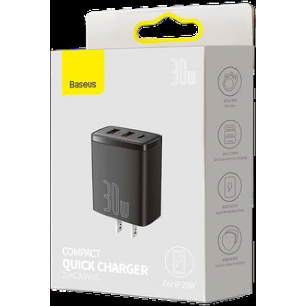 Сетевое зарядное устройство Baseus Compact Quick Charger, 30 Вт, USA, черный